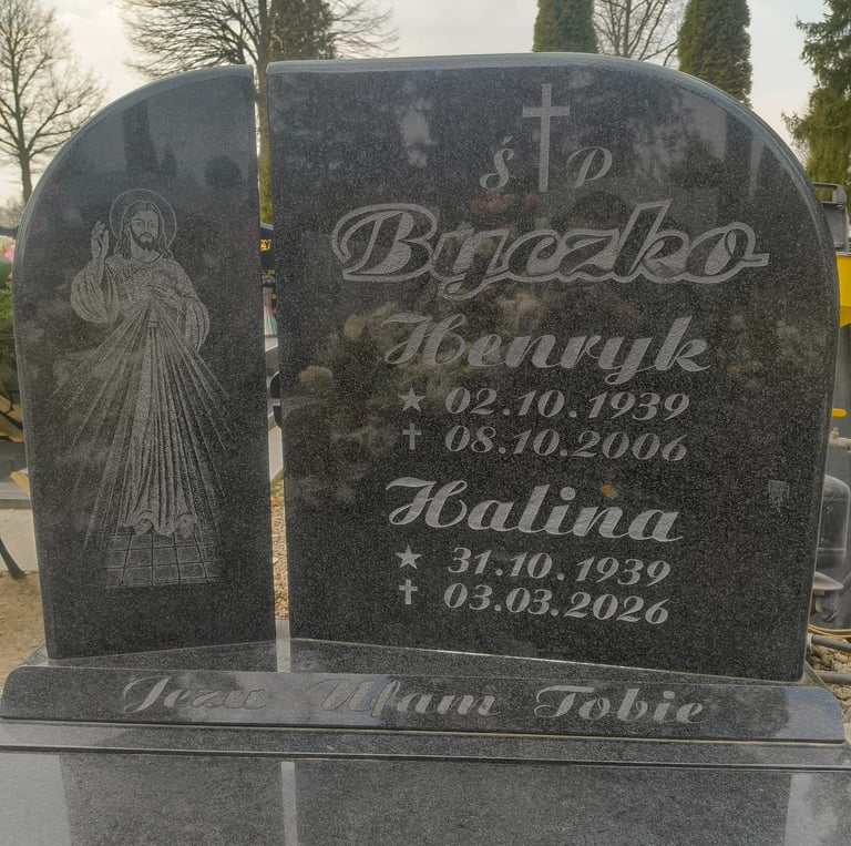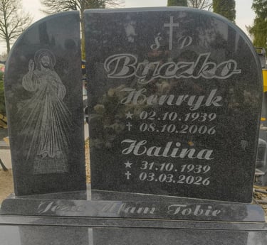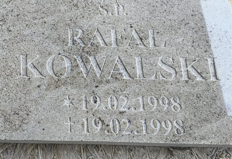 Piaskowanie lub Kucie liter na nagrobkach, tworząc trwałe i dokładne napisy w kamieniu.